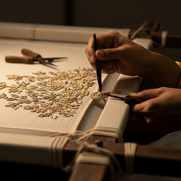 Each stitch is guided by hand — slow, meticulous and rich in heritage.
