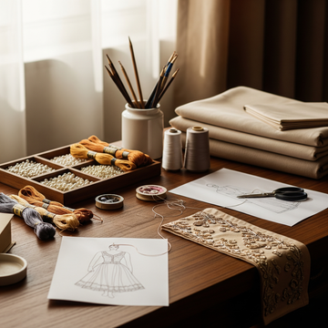 Your garment is brought to life inside our atelier by master artisans who have spent decades preserving India’s couture craftsmanship.