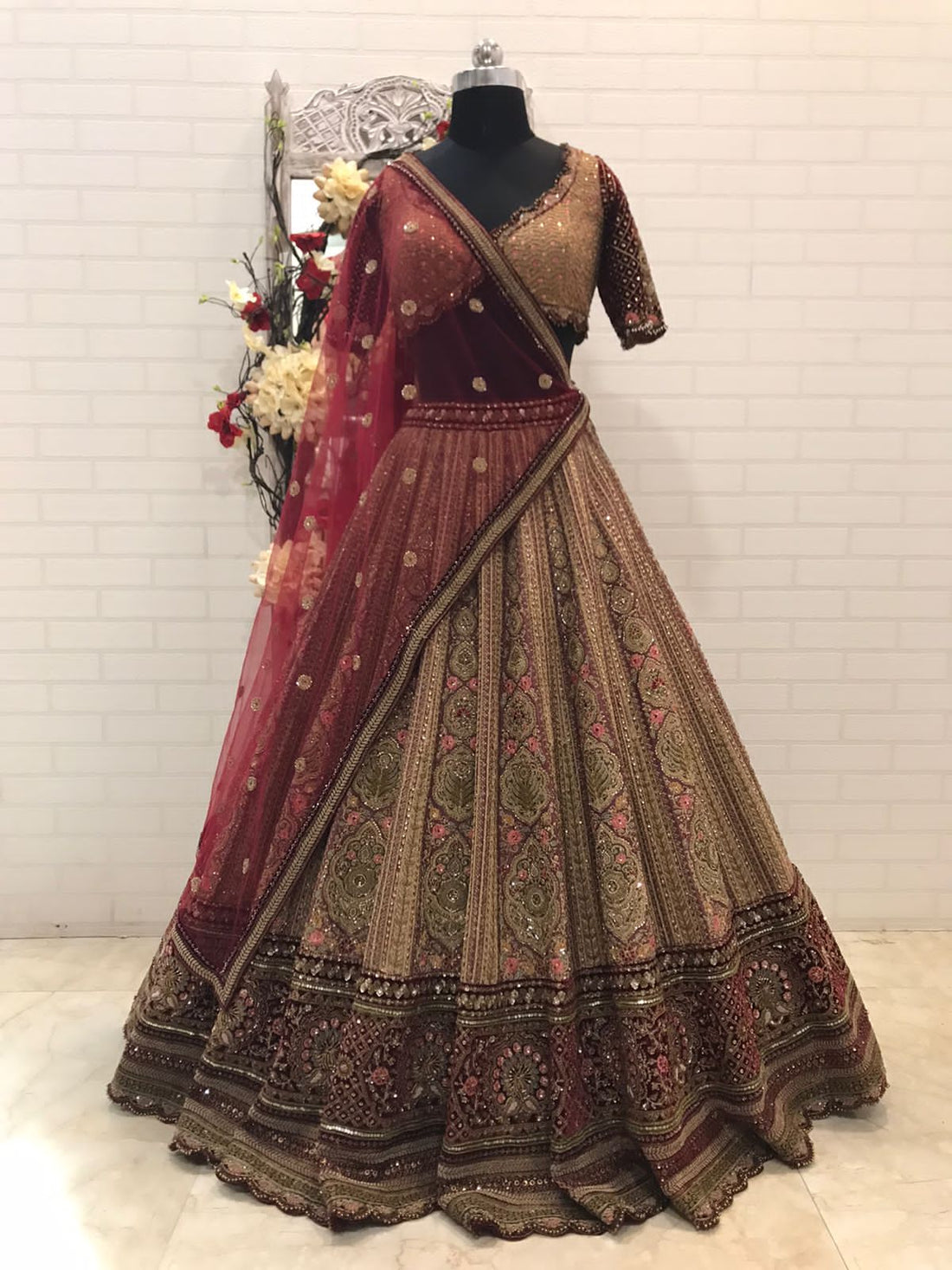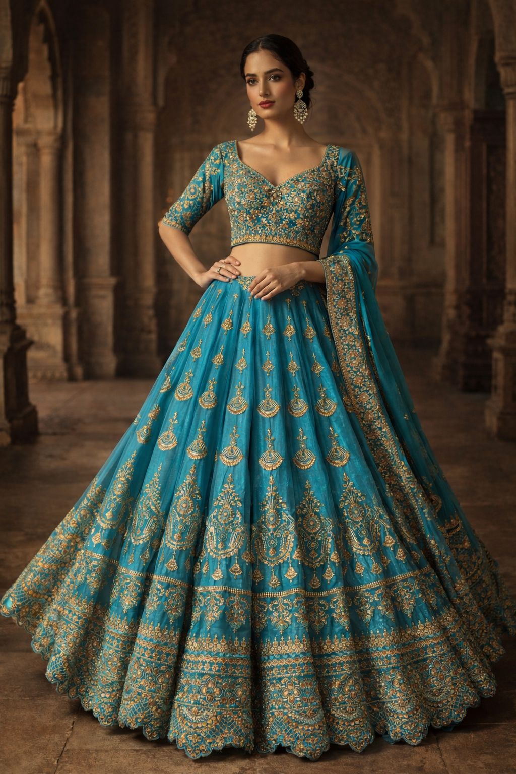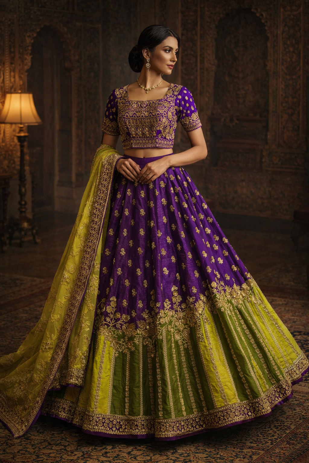 Sage Royale Brocade & Jewel-Embellished Couture Lehenga Set