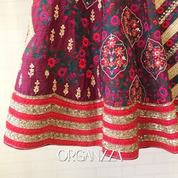 💃 Maroon chevron-embroidered lehenga skirt