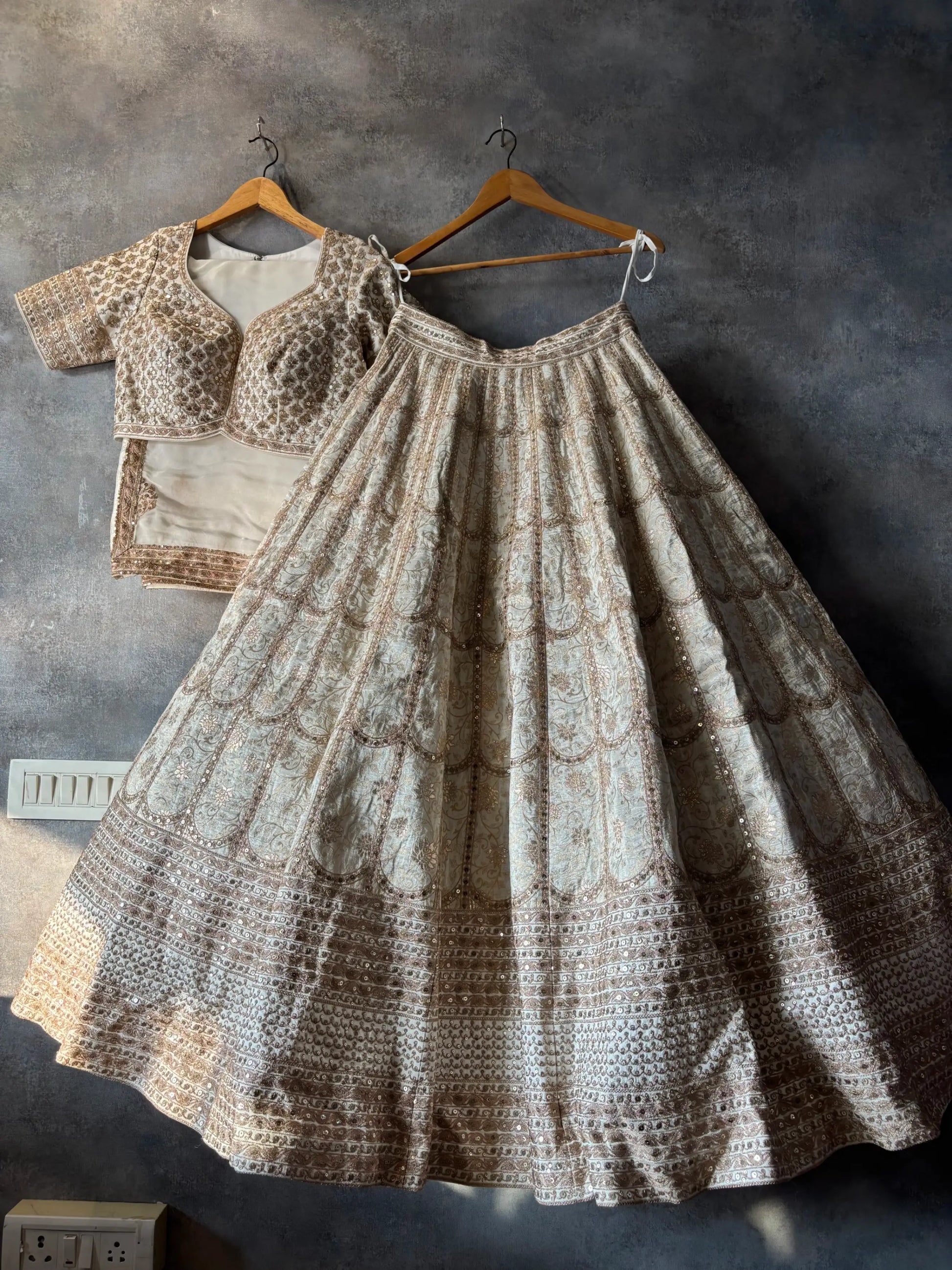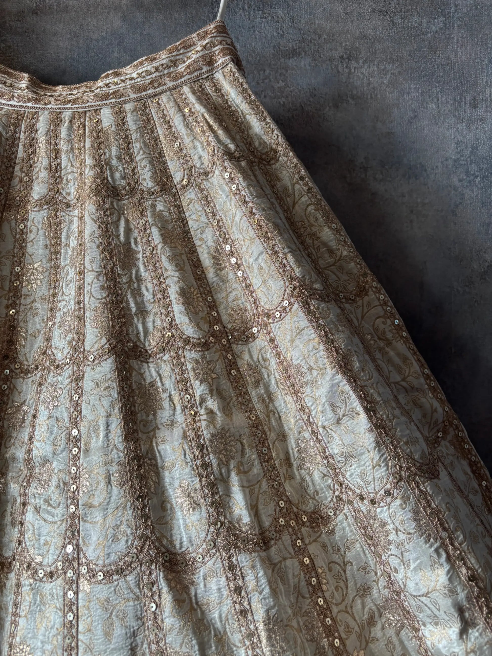 🥂 Fully embroidered champagne lehenga skirt with drawstring waist