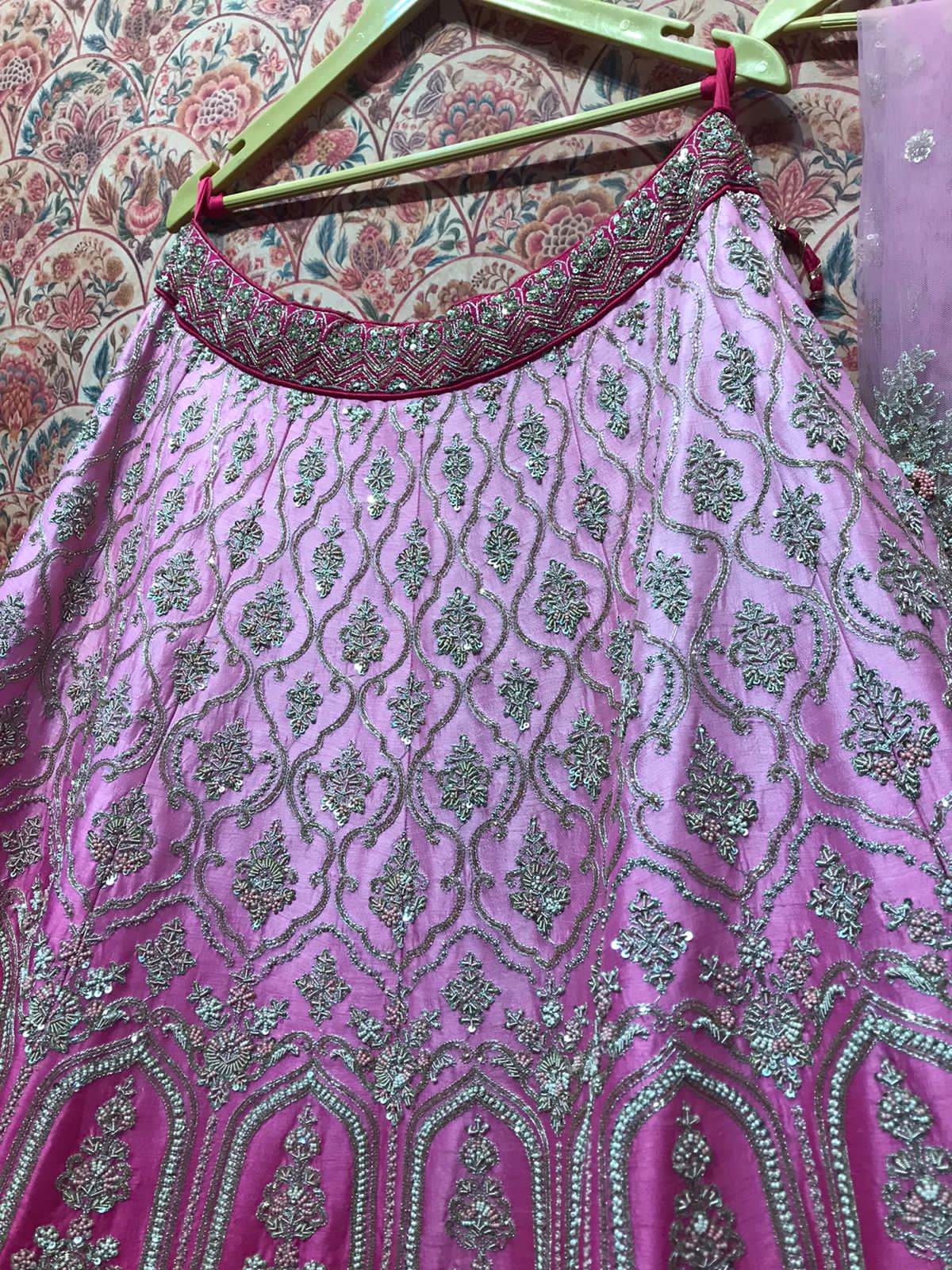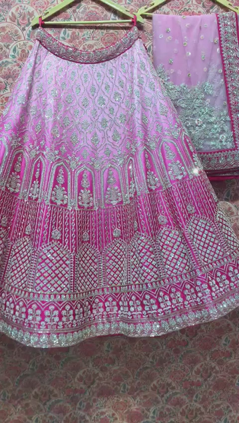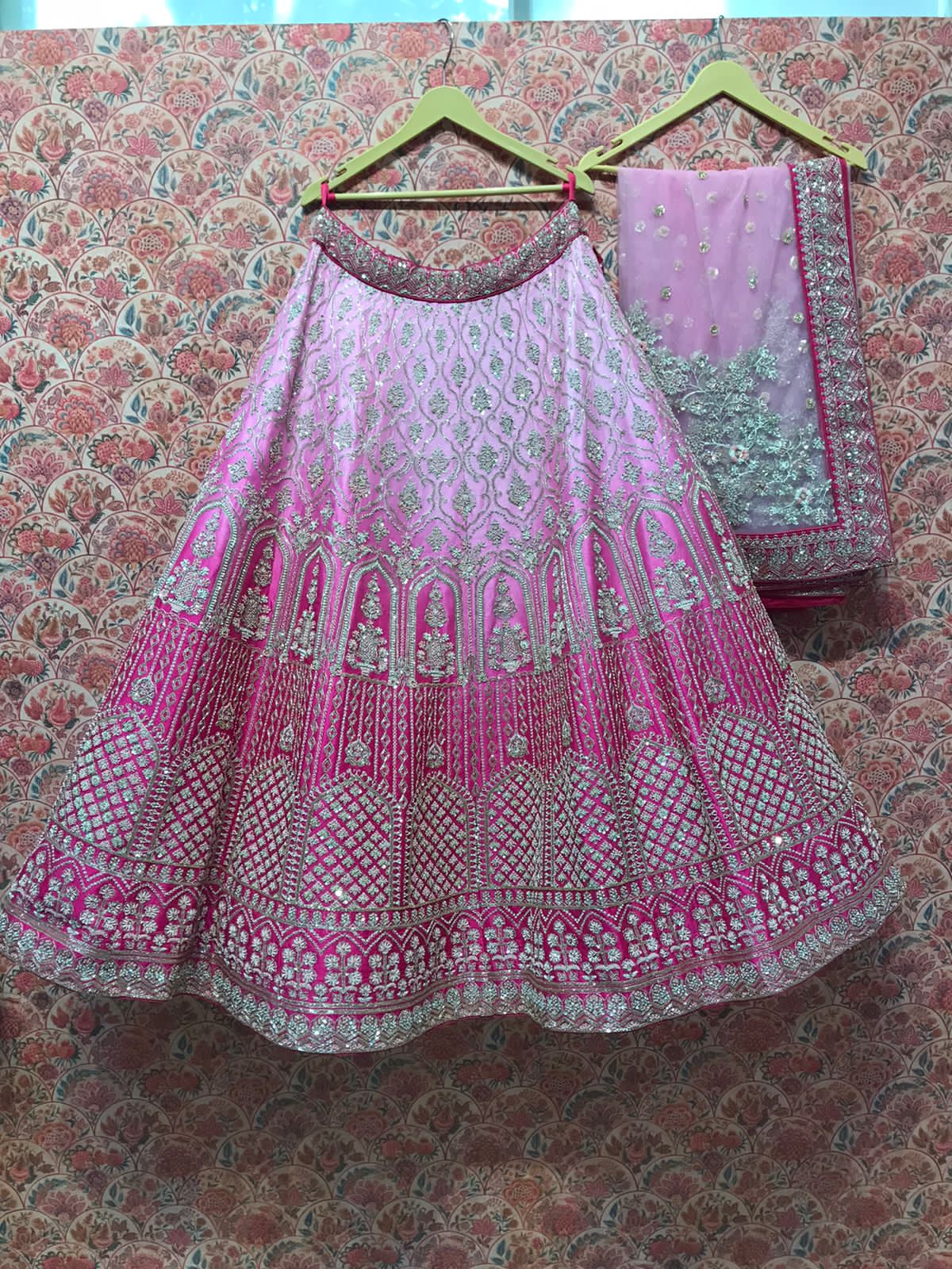 - Fuchsia pink base matching the lehenga