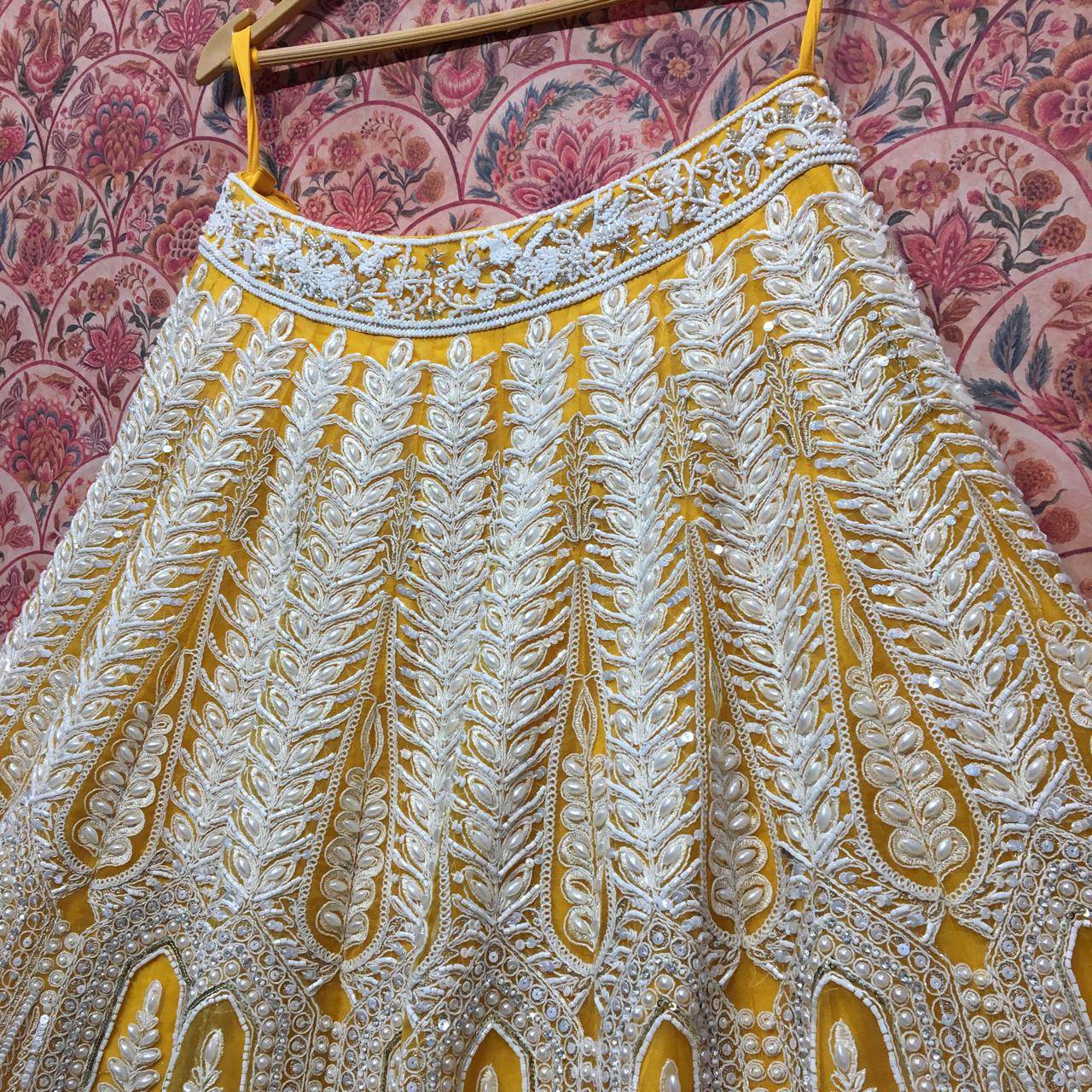 ☀️ Fully embroidered yellow + white gota lehenga