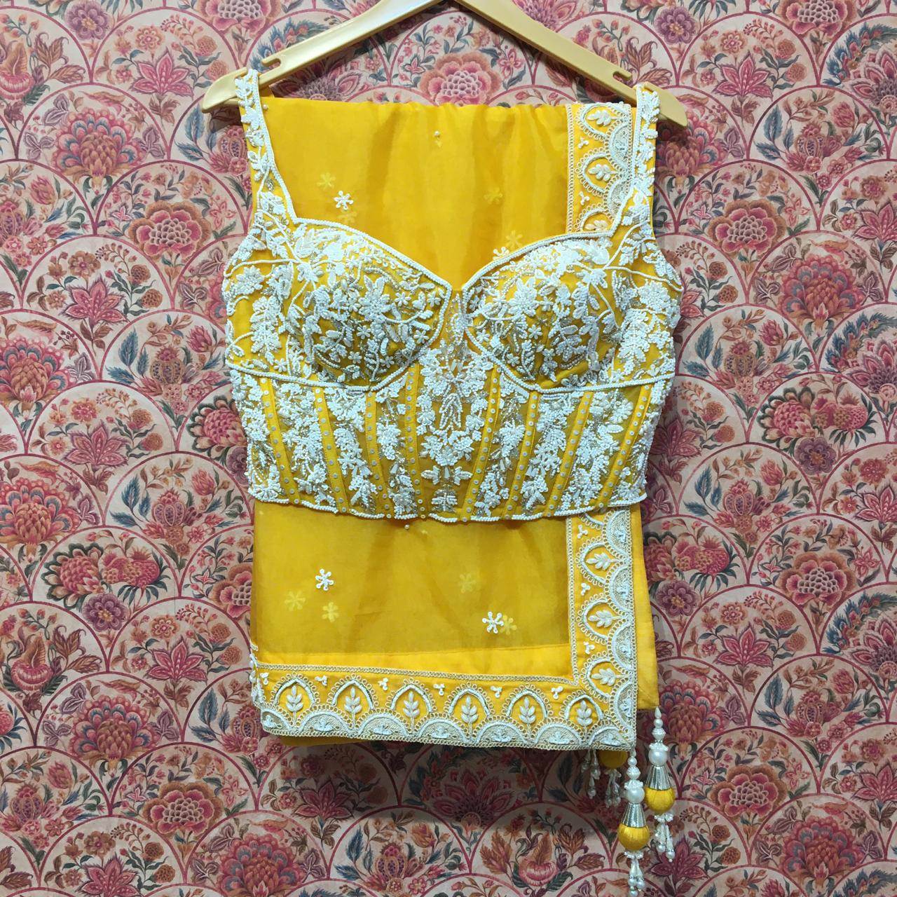☀️ Matching bustier blouse with white gota work