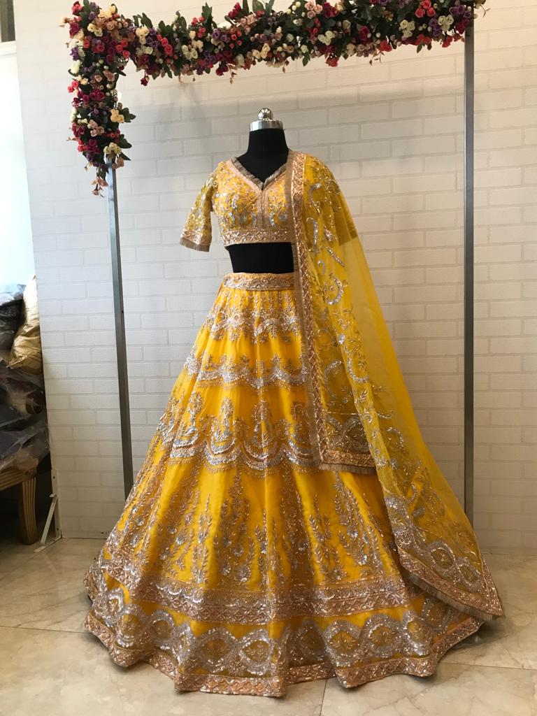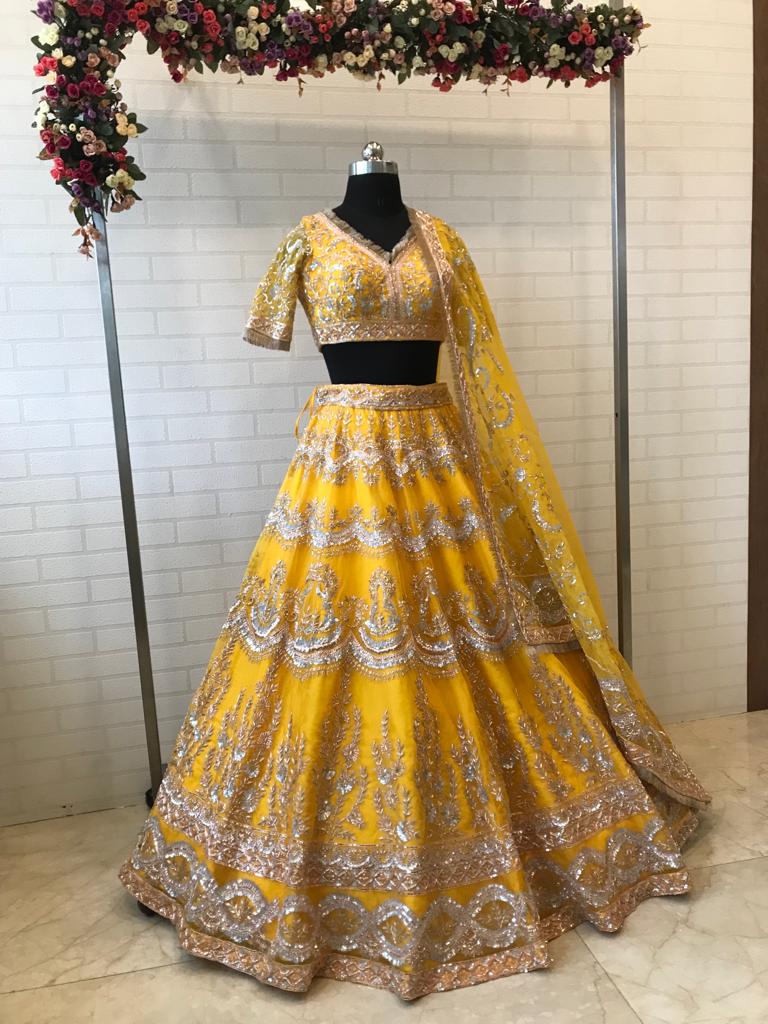 "I didn't want a simple yellow sari for my Haldi. I wanted a lehenga that felt just as special as my wedding day outfit. The silver work on this made it pop so much in the photos!" — Simrit K., Chandigarh