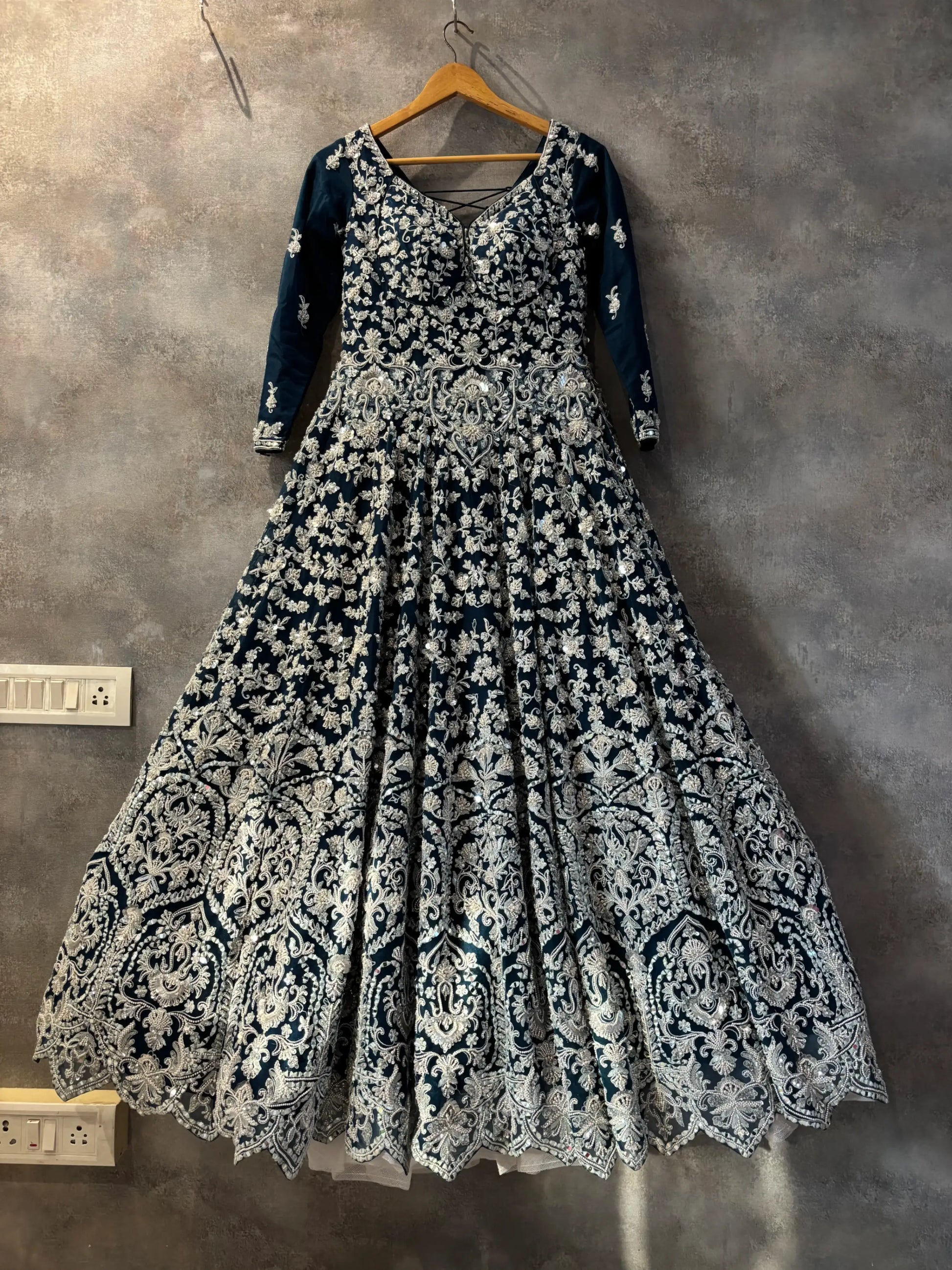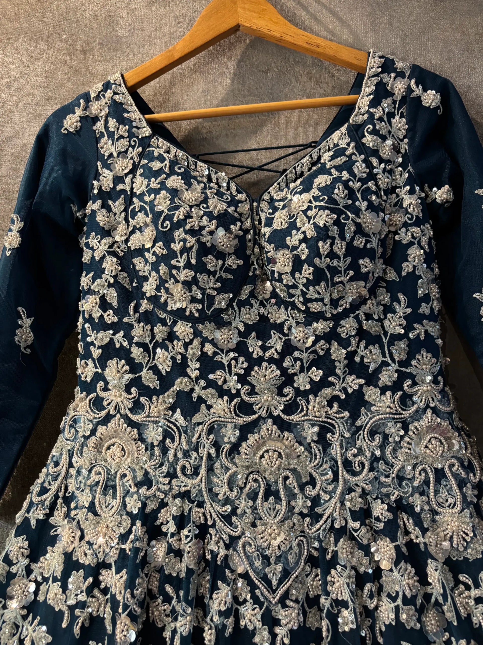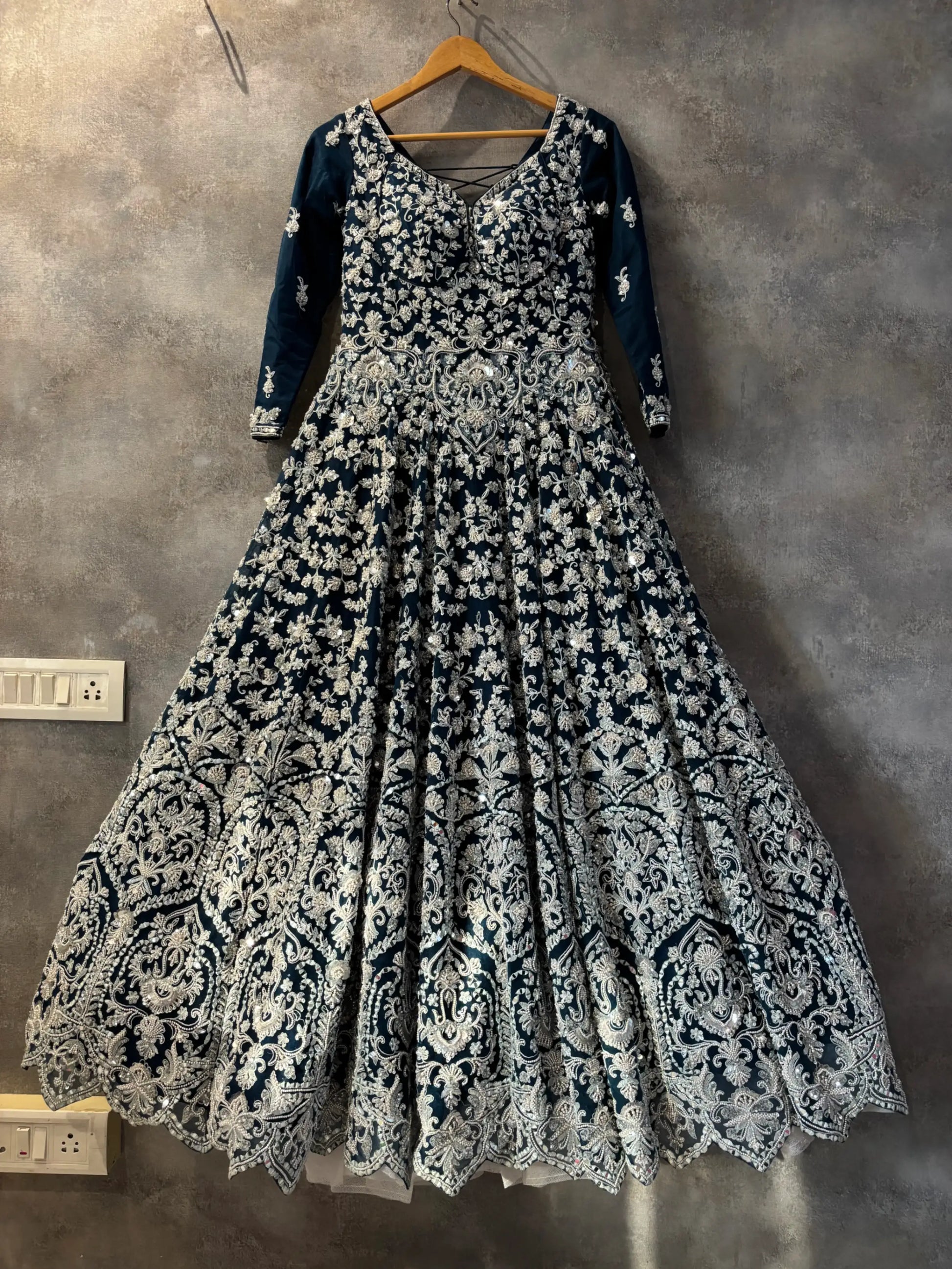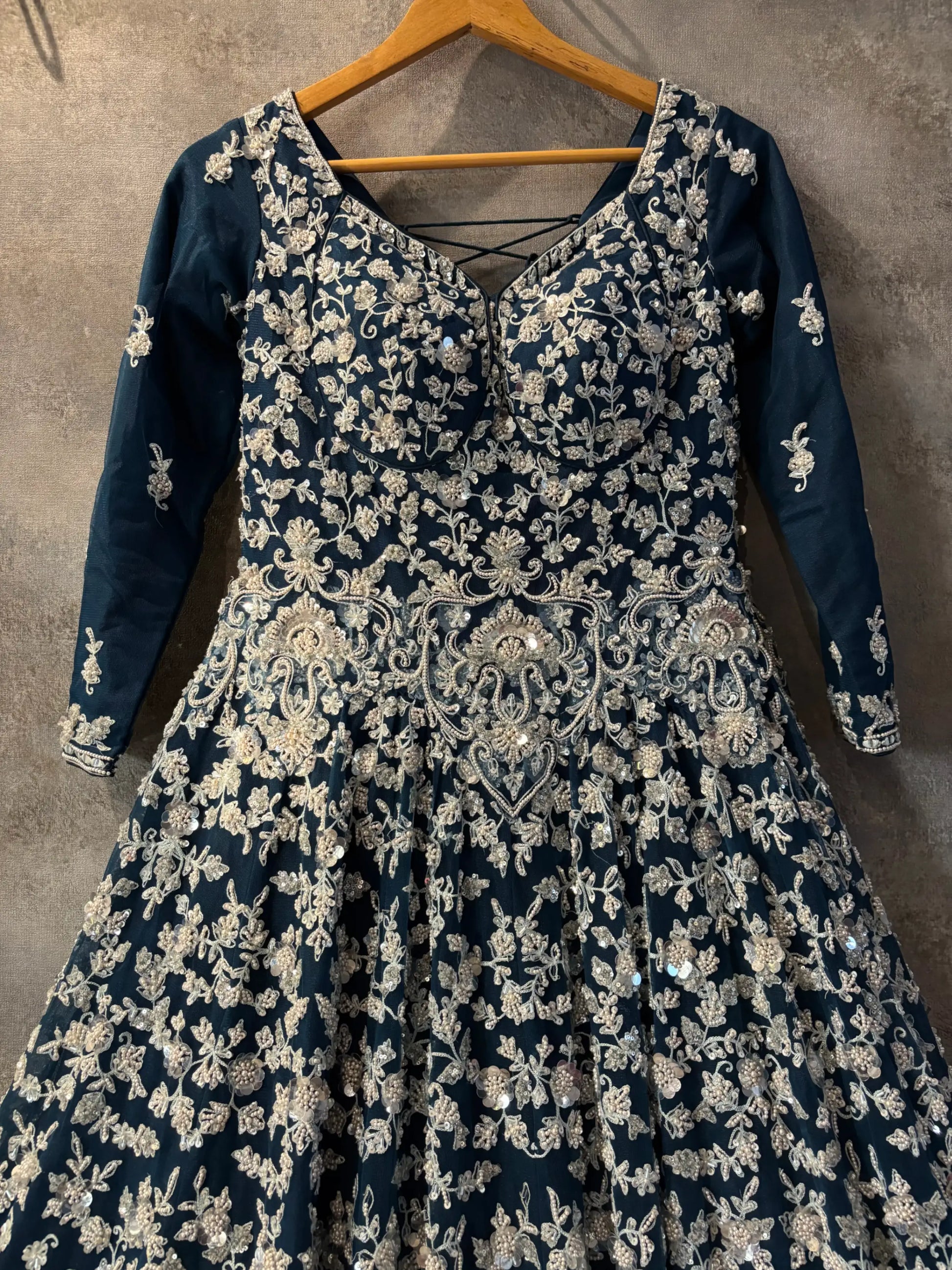 🌌 Fully embroidered midnight navy anarkali lehenga