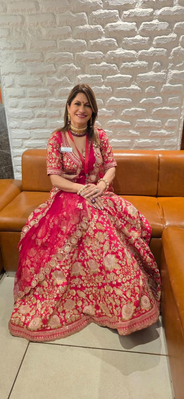 Jewelry: A heavy Polki or Kundan choker is essential. Pair with a long Satlada or Rani Haar to complement the deep neckline. Traditional Chooda looks stunning against this crimson shade.