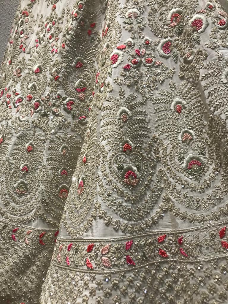 What makes this lehenga special is its tactile quality. The raised threadwork creates genuine texture—your hand would feel the patterns as clearly as your eyes see them. It's embroidery as art, craft elevated to couture.