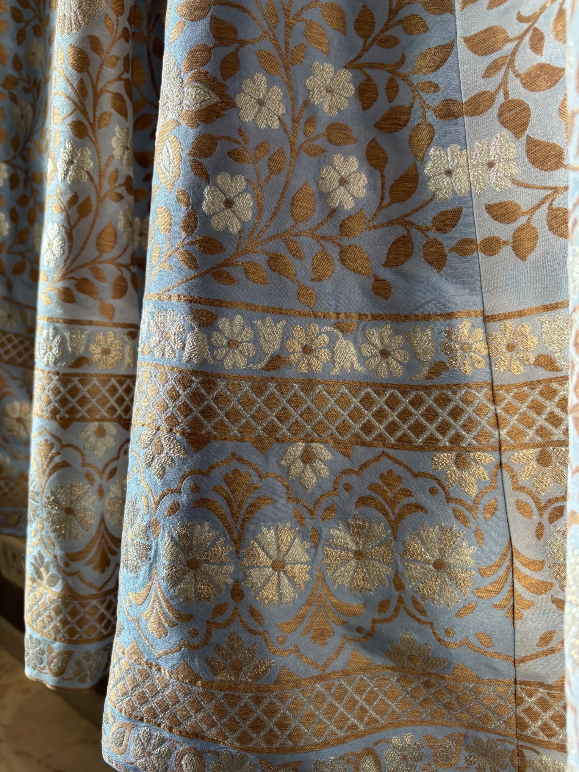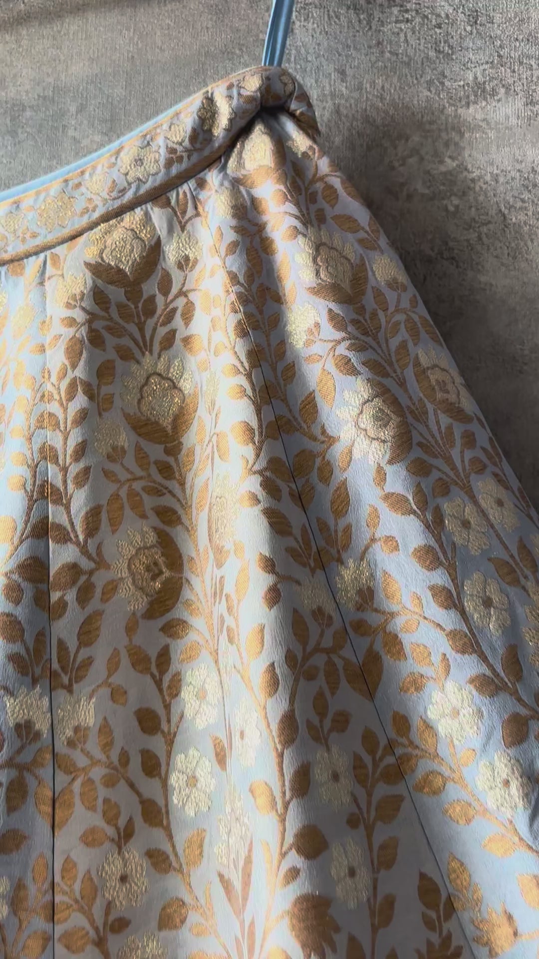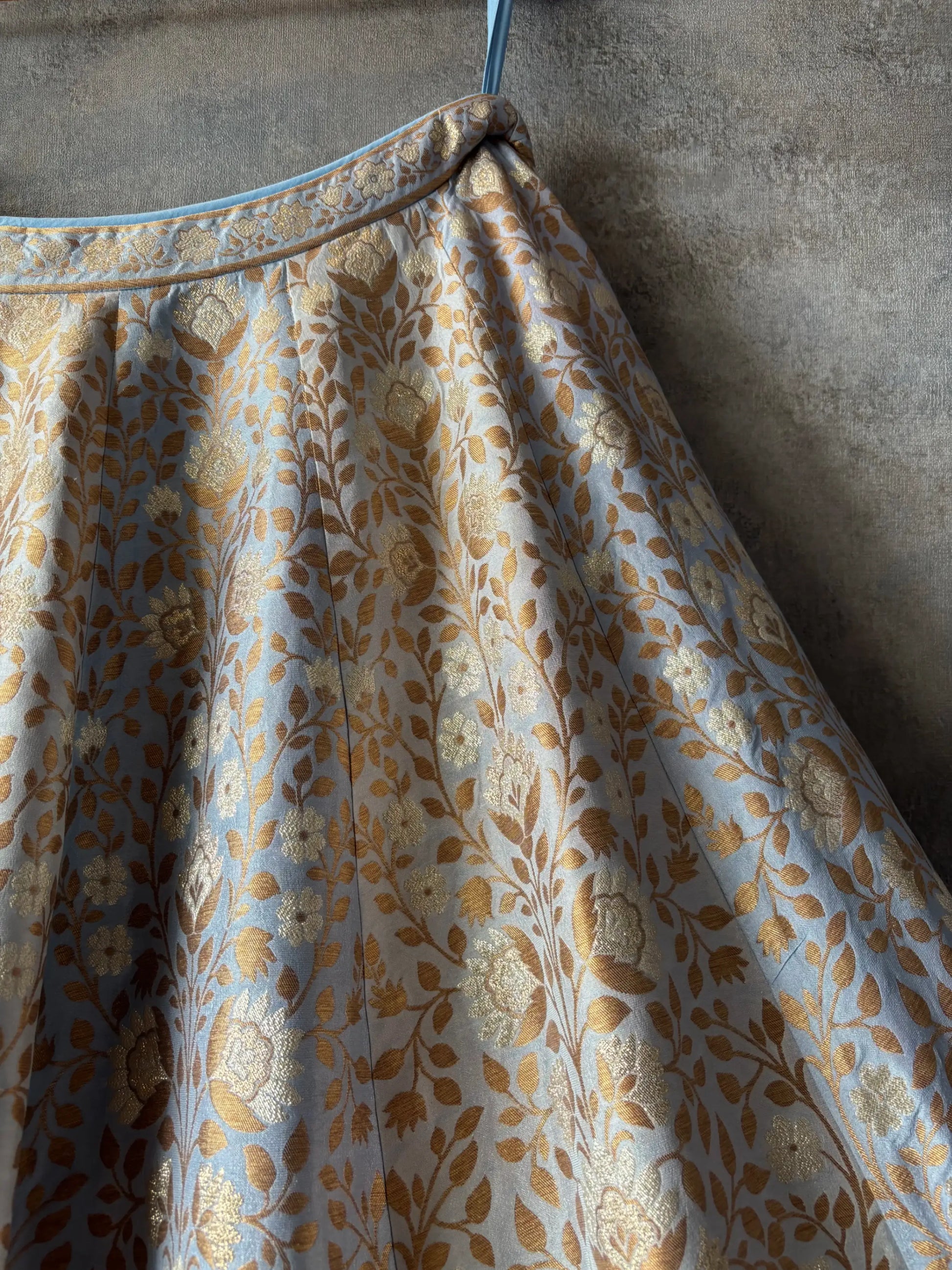 🌸 Matching powder blue + gold brocade lehenga skirt with drawstring waist