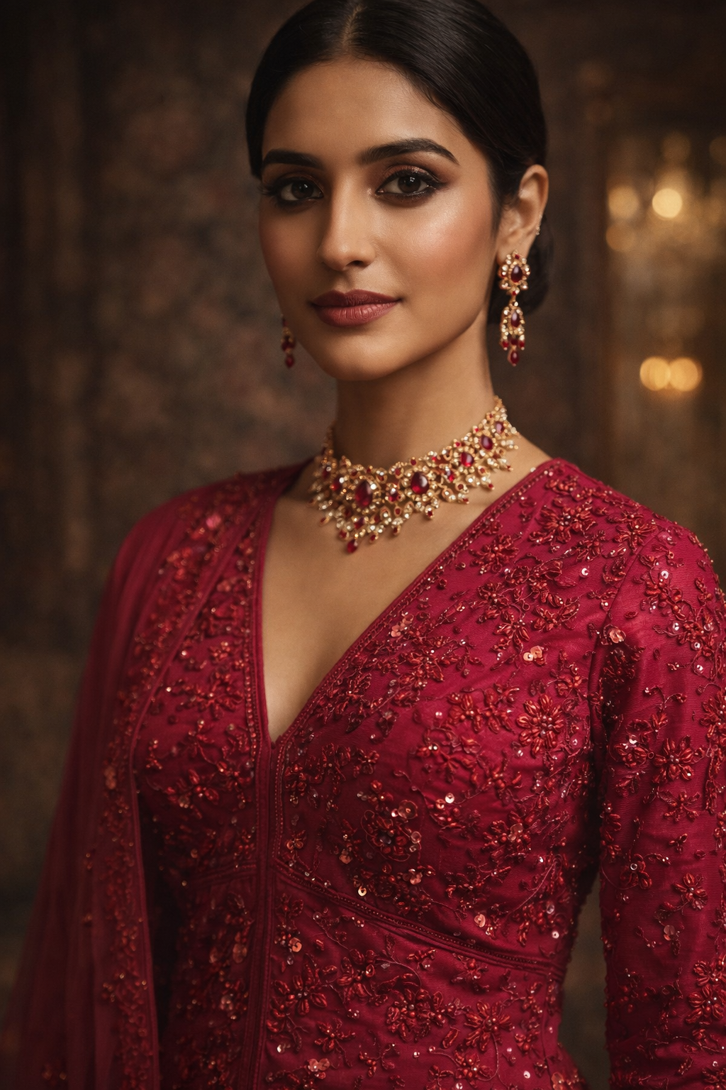 Ruby Romance represents the art of all-over embellishment executed with balance and wearability in mind.